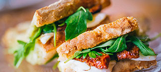 - A freshly prepared vegetarian option of either, homemade vegetable lasagne or chunky vegetable and halloumi skewers, served with a mint yogurt dressing