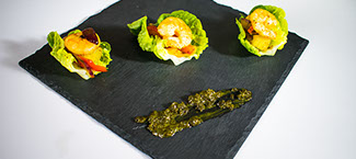 - Mini vegetarian stir fry, served on a cracker with a soy dressing