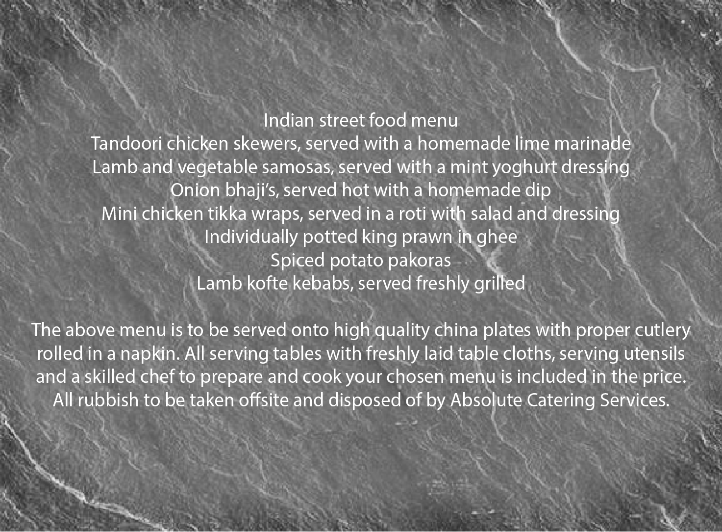 INDIAN STREET FOOD MENU